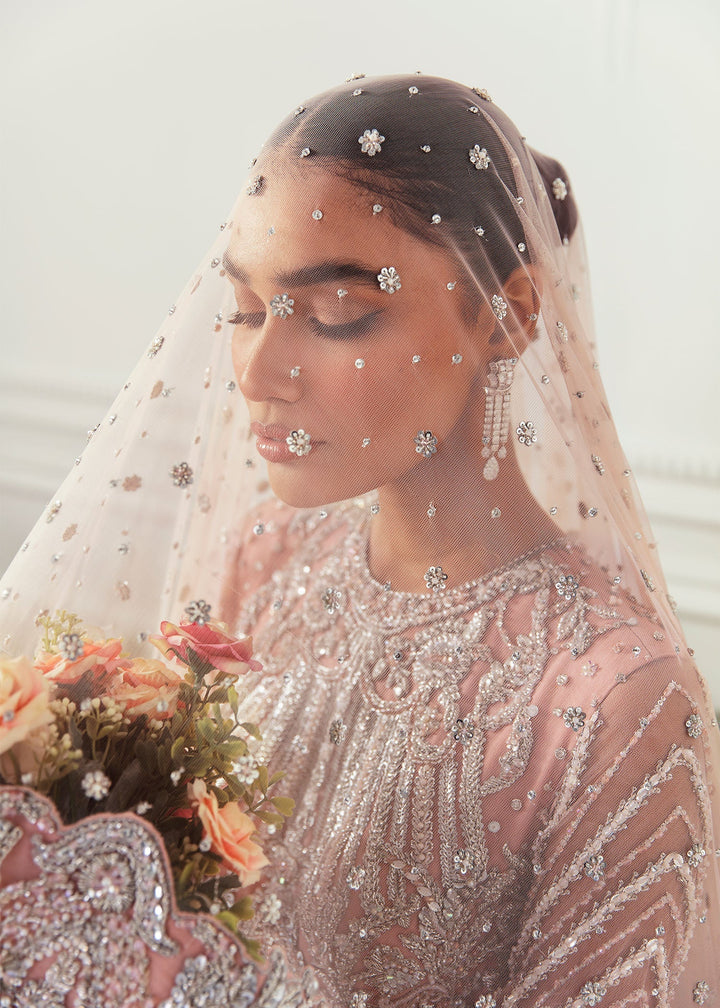 Dupatta: Designer Embroidered Blush Pink Indian Outfit is emblazoned Wedding maxi that comes with a pink heavily embroidered dupatta which is giving a finishing look to the dress. The Tissue Net fabric dupatta is embellished with gotta, silver stones, and heavy floral embroidered borders for four sides of the border. it has sprinkled stones and floral design on the whole dupatta giving the everlasting impact