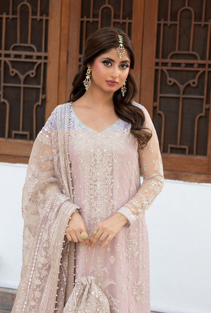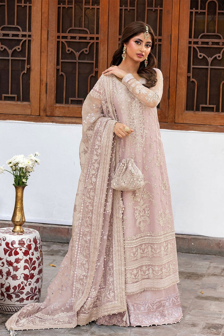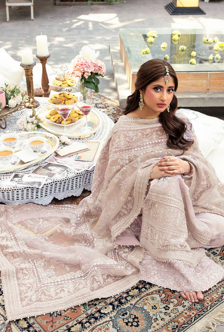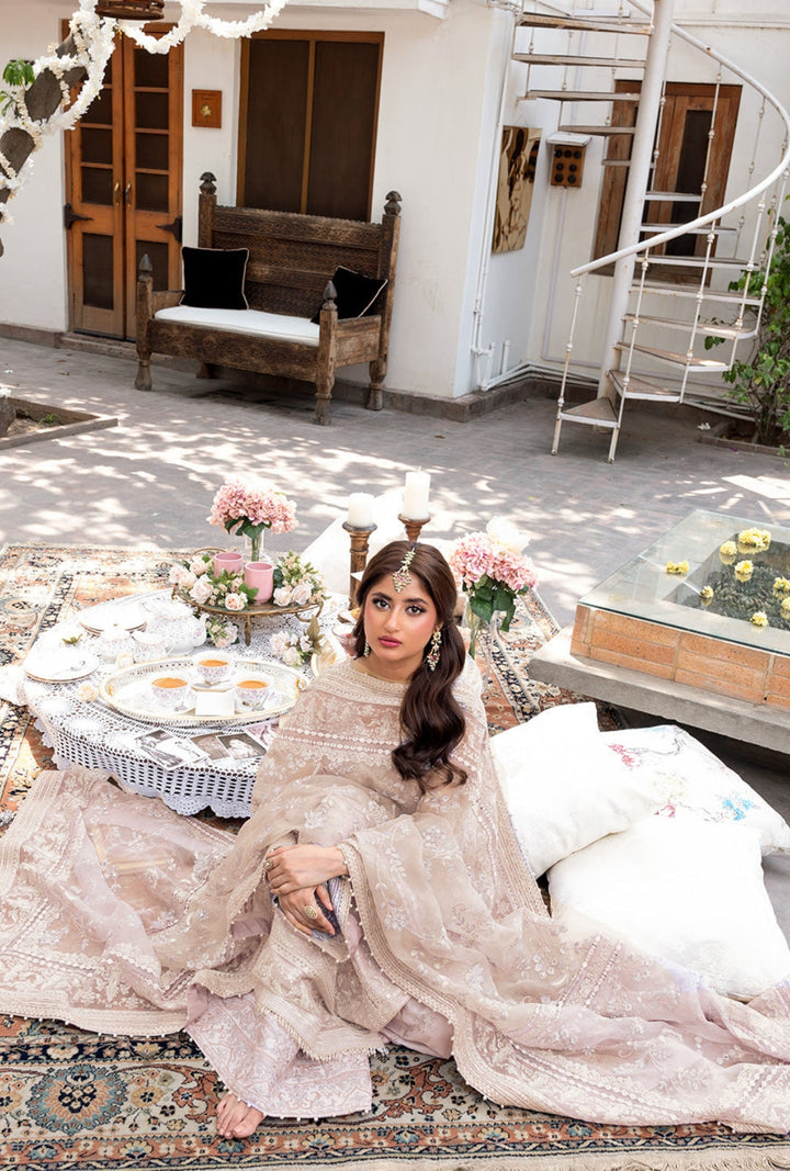 Soft Pink is a symphony of elegance and grace. Each motif of resham and sequins is thoughtfully designed in-house and carefully curated on a delicate, soft pink net shirt. The Raw Silk culottes come splendidly adorned, while the organza dupatta adds a majestic finishing touch to the ensemble.