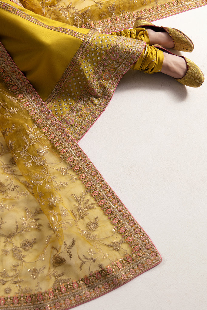 Unleash vibrant elegance with our Parrot Korean Rawsilk Ensemble. This stunning ensemble, in the lively hue of parrot green, combines the luxe feel of korean rawsilk with a chic chooridaar for a flattering silhouette is paired with an organza intricate Jaal Dupatta, adorned with mesmerizing patterns that elevate your style game. Perfect for those who dare to stand out in a crowd, this ensemble is a celebration of tradition and modern allure. Get ready to turn heads and make a statement at any occasion.