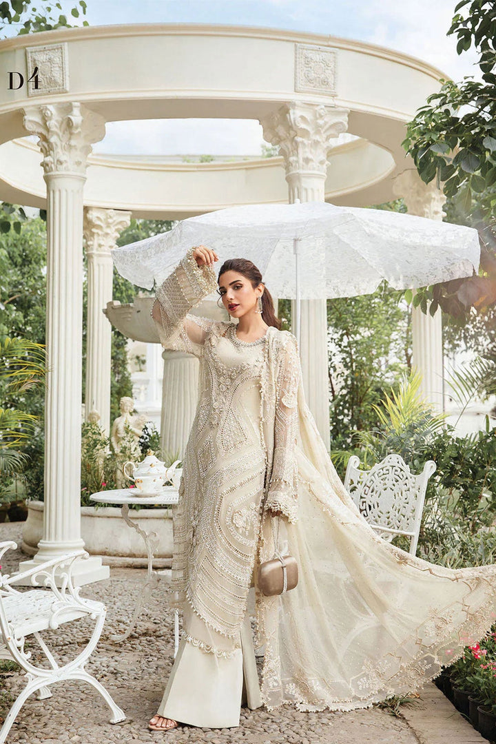 Embrace timeless elegance with this exquisite ivory formal ensemble, perfect for any special occasion. The outfit features delicate embroidery and embellishments, creating a luxurious and sophisticated look. The intricate design is highlighted by soft, flowing fabric, ensuring both comfort and style. Paired with a matching dupatta, this ensemble radiates grace and charm, making it a perfect choice for weddings, receptions, or formal dinners.