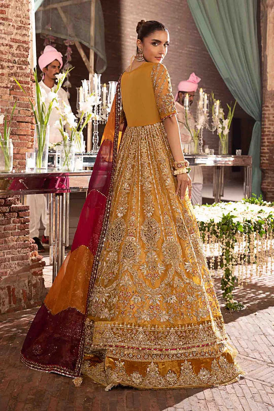 Zehrin' - A poetic symphony of meticulous craftsmanship weaving timeless allure with ethereal two-shaded panni work with expressions of multi-color mukesh. This majestic masterpiece showcases a canvas of sequins cascading gracefully across the sheer fabric for unmatched grace. It evokes a sense of tradition & serene beauty with intricate velvet lace & velvet patti. With its refined elegance & bold allure you can style it on Mayon, Mehndi & Shendi occasions.