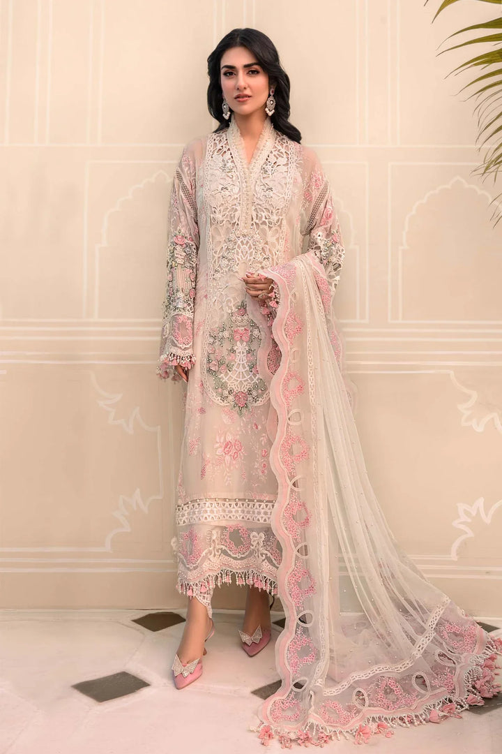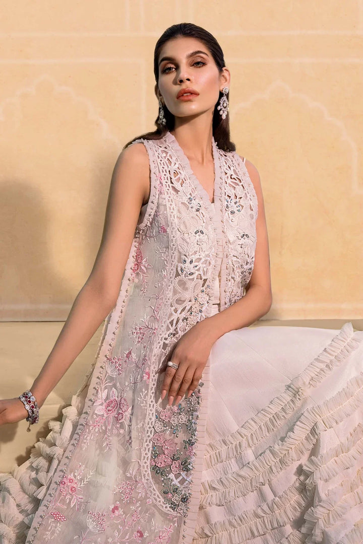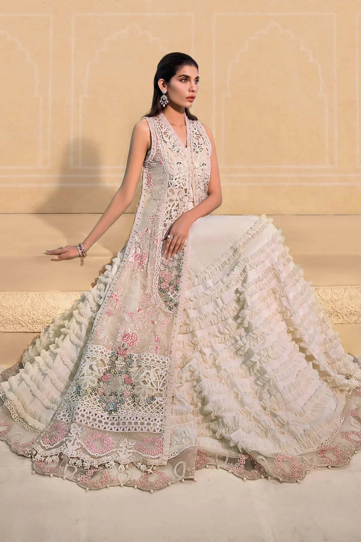 Embroidered Organza Center Panel with Hand Embellished & 3D Flowers