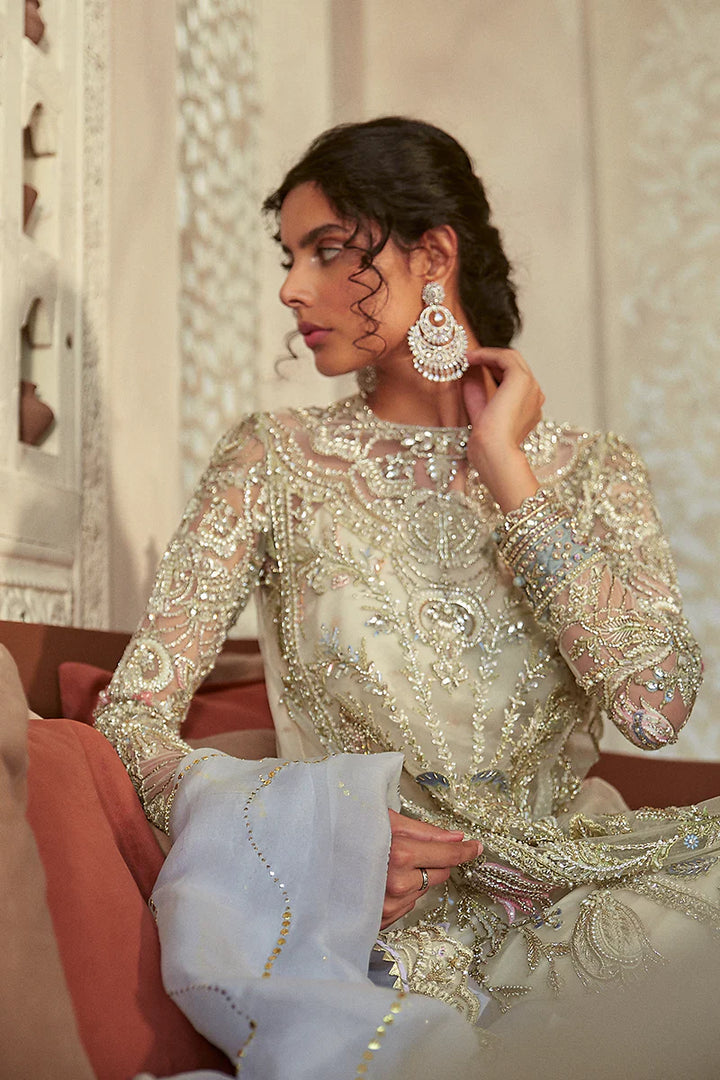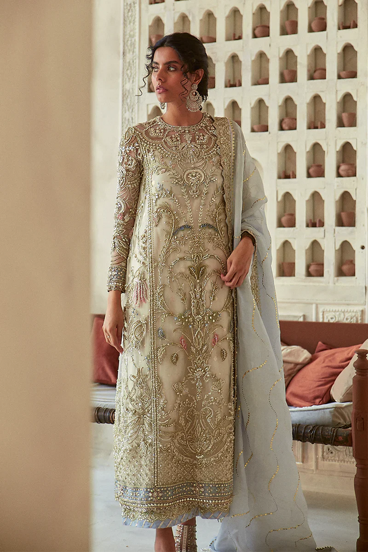 - IVORY COLOURED LONG SHIRT CRAFTED IN A GORGEOUS INTERLAY OF PEARL ENCRUSTED HAND EMBELLISHMENT.