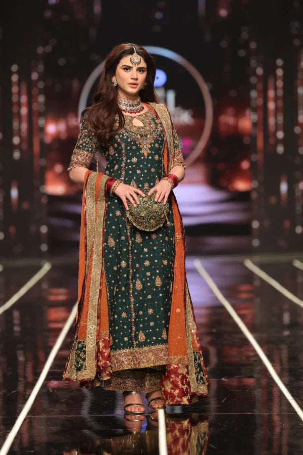 Step into timeless elegance with the Haris Shakeel Zubab Rana Embroidered Formal Dress. This breathtaking ensemble features a richly embroidered black base adorned with intricate floral patterns in vibrant hues. The outfit is paired with a beautifully designed matching dupatta, bordered with fine embroidery that enhances its luxurious appeal. Perfect for weddings, evening soirées, or festive gatherings, this masterpiece embodies a seamless blend of tradition and contemporary sophistication. Crafted to perfection, Haris Shakeel's design ensures you stand out with grace and charm.